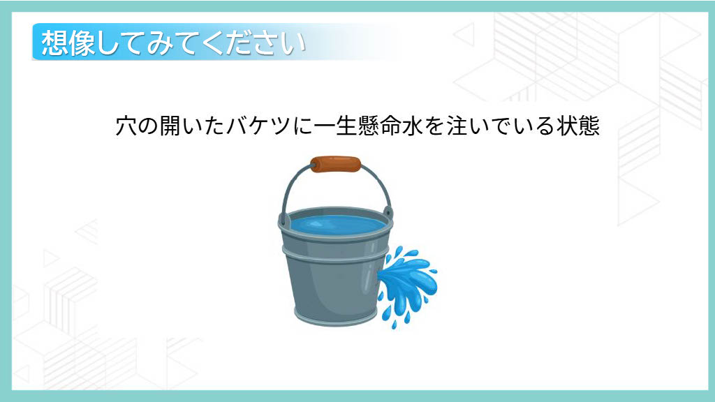 穴の空いたバケツに、一生懸命水を注いでいませんか?