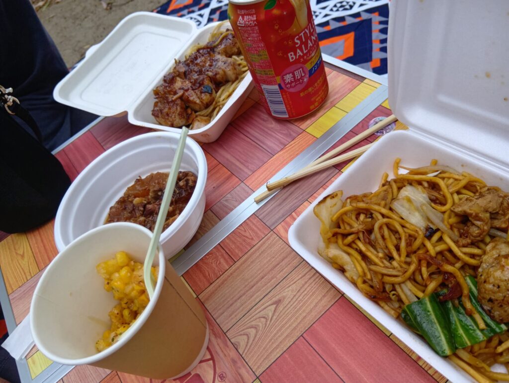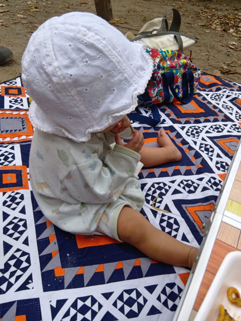 少し離れた木陰にレジャーシートを敷いて食べるのが我が家の定番です♪